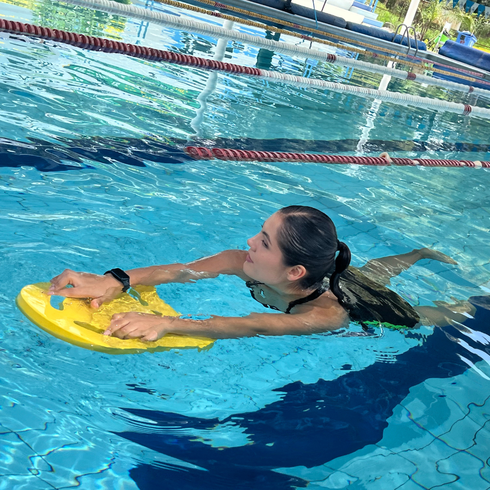 2. Esta tabla brinda seguridad al mantener el cuerpo en posición de nado en el aprendizaje de natación.